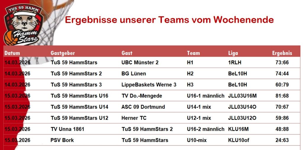 Ergebnisse unserer Teams vom Wochenende
